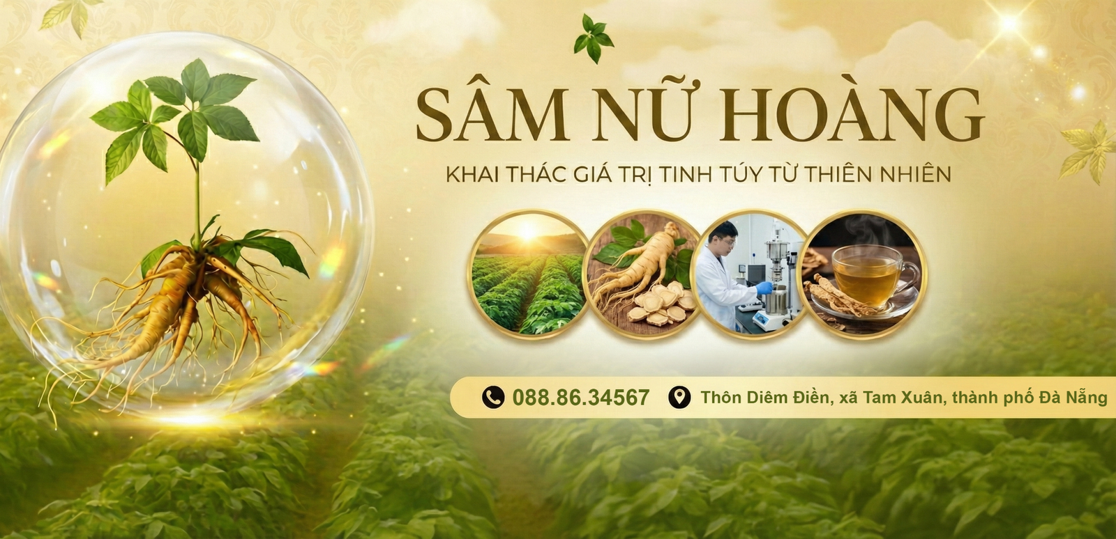 Tự hào là đơn vị tiên phong trong lĩnh vực sản xuất và thương mại các sản phẩm từ Sâm Nữ Hoàng. Với khát vọng nâng tầm giá trị dược liệu Việt và phát triển bền vững, công ty tiên phong trong việc xây dựng chuỗi sản xuất khép kín từ Nuôi trồng – Khai thác – Chế biến – Phân phối nhằm tạo nên những sản phẩm chất lượng cao, an toàn và giàu giá trị sức khỏe.