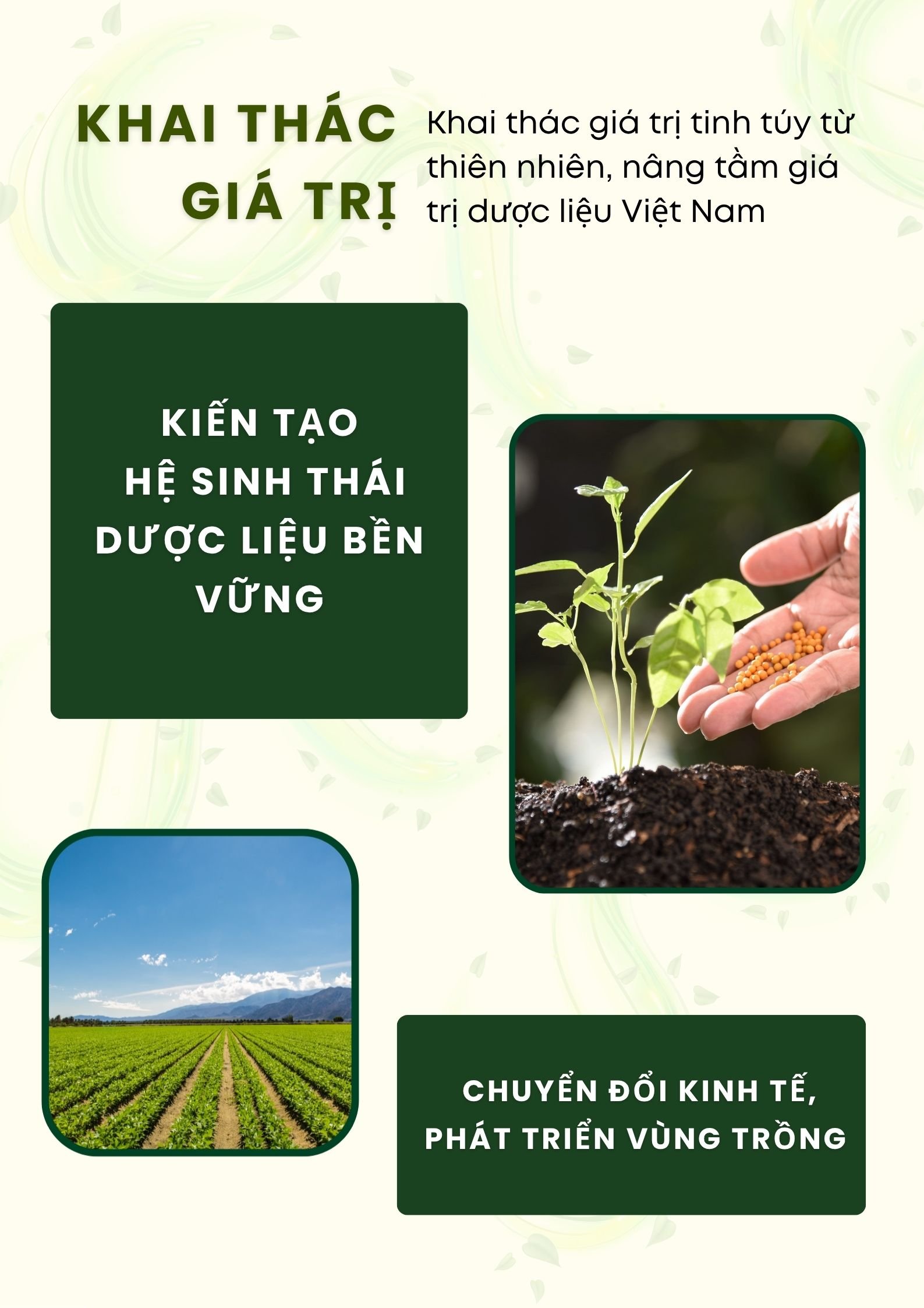 - Tinh hoa thiên nhiên – Khai thác có trách nhiệm, giữ trọn giá trị nguyên bản và bản sắc Việt.